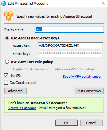In the resulting page, you would update the “Access Key ID” and “Secret Access Key” fields with your new access key credentials.