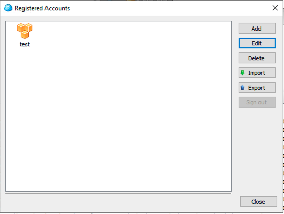 The Registered Accounts screen will appear, select an account and hit the Edit button: